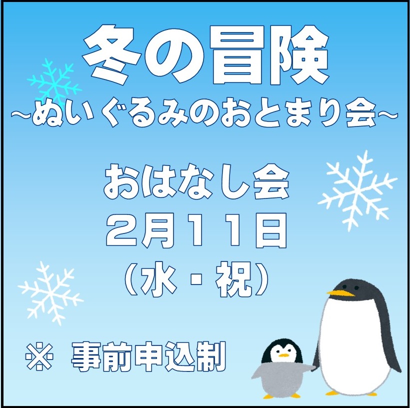 冬のおはなし会『冬の冒険〜ぬいぐるみおとまり会〜』のお知らせ